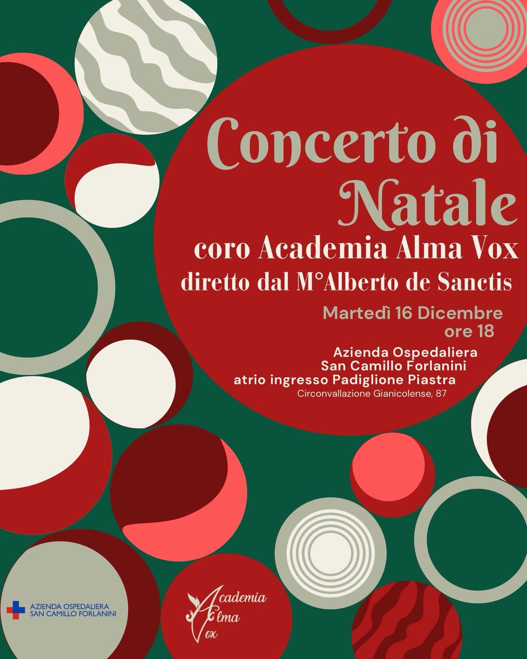 L’Azienda Ospedaliera San Camillo Forlanini invita pazienti, familiari, personale ospedaliero e cittadinanza al Concerto di Natale eseguito dal coro Academia Alma Vox, diretto dal Maestro Alberto de Sanctis.