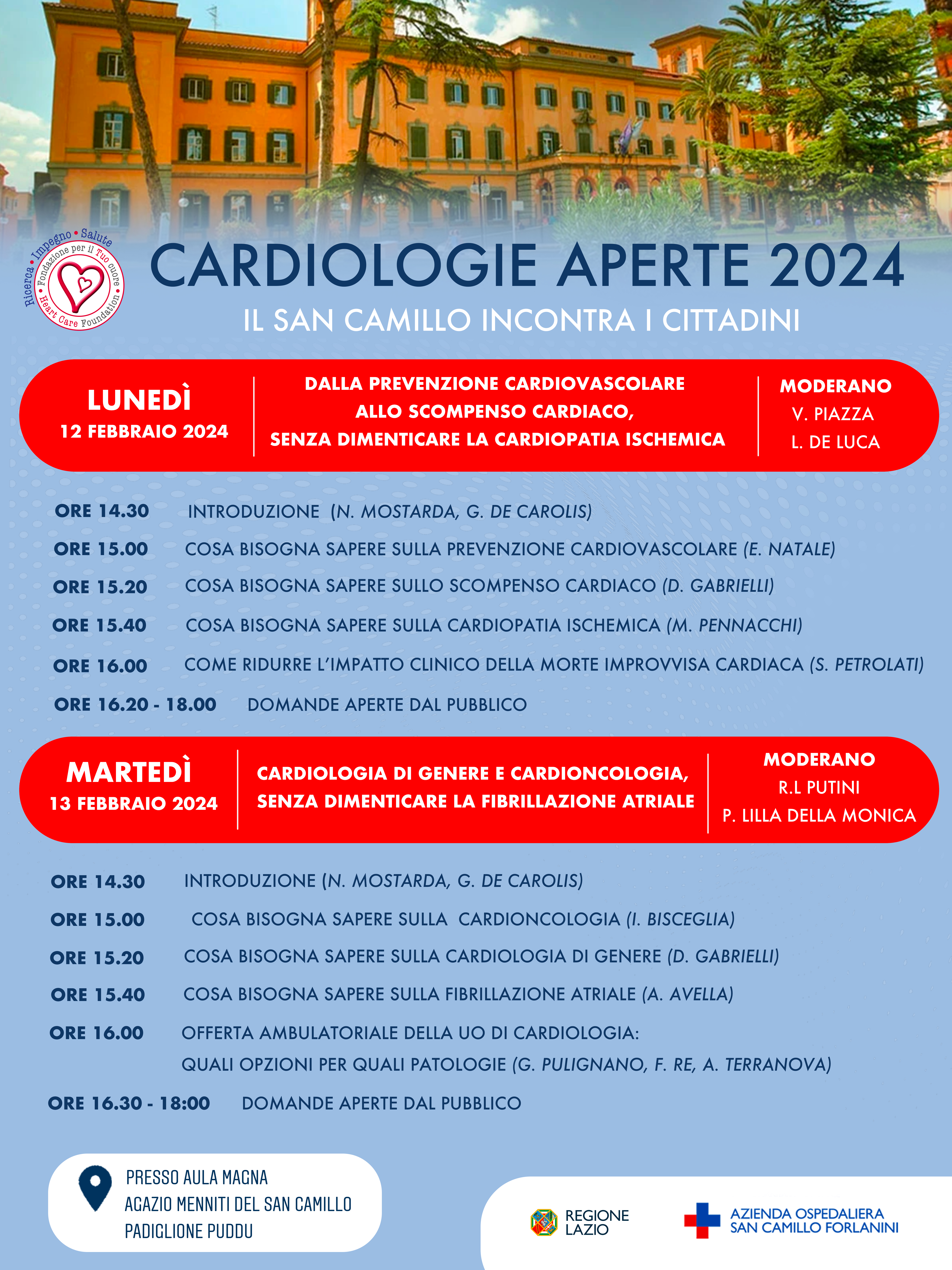 Cogliamo l'occasione per invitare tutta la cittadinanza il 12 e 13 febbraio, presso l'Aula Magna Agazio Menniti, Padiglione Puddu, all'incontro organizzato dai nostri professionisti per parlare delle problematiche più comuni che possono colpire il cuore, con l’obiettivo di sensibilizzare tutti al riguardo e prevenire alcune delle più diffuse patologie cardiovascolari.